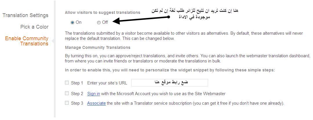 من الأفضل ترك خاصية طلب اللغة Off كي لا يطلب منك الدخول بحسابك والتسجيل في أدوات أصحاب المواقع